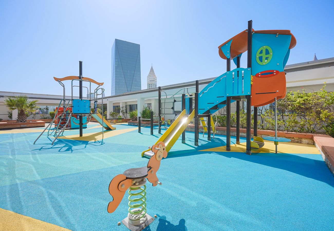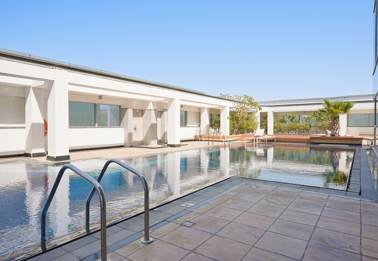 Appartement à Dubai qui possède 1 chambre(s) et Capacité pour 2 personnes. Logement de 106 m². Elle dispose de ascenseur, lave-linge, sèche-linge, fer à repasser, coffre-fort, sèche-cheveux, balcon, salle de sport, alarme, chauffage central, climatisation dans tout le logement, piscine collective, parking couvert même bâtiment, 1 Télévision.La cuisine indépendante, à gaz, est équipée avec réfrigérateur, micro-ondes, four, congélateur, lave-vaisselle, vaisselle/couverts, ustensiles/cuisine, cafetière, grille pain et bouilloire.