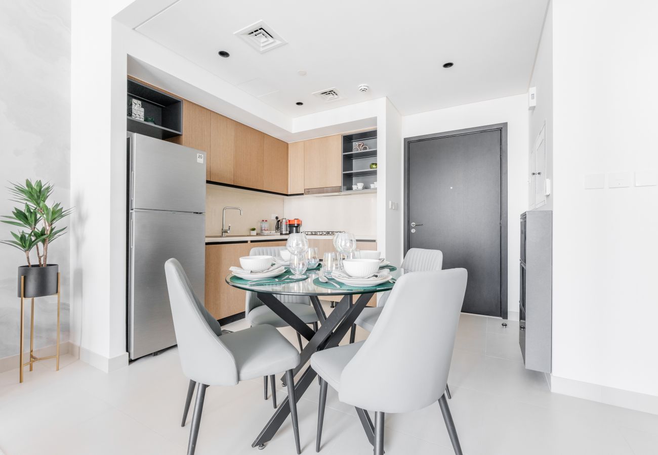 апартаменты в Dubai 1 количество спален вместимостью на 2 чел. Проживание из 59 кв.м. Размещение имеет лифт, стиральная машина, сушилкой для белья, утюг, сейф, Фен, Балкон, Тренажерный зал, Сигнализация, центральное отопление, систему кондиционирования во всем помещении, бассейн жилого комплекса, закрытая парковка в этом же здании, 1 телевизор. Отдельная кухня, оснащена газовой плитой, оборудовано холодильник, микроволновая печь, духовка, морозильная камера, посудомоечная машина, столовые приборы, кухонная утварь, кофеварка, тостер и Чайник.